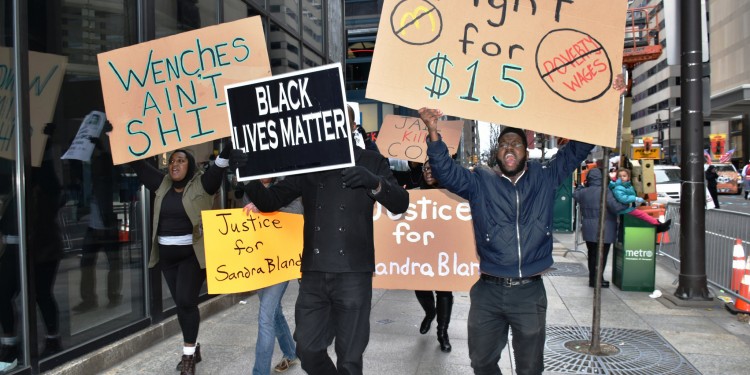 Organizers say the issues of racial and economic justice increasingly overlap. They note that more than half of black workers and three in five Latinos earn less than $15 an hour, according to the National Employment Law Project. They are seeking to cast recent minimum-wage battles in racial terms, including votes by predominantly white state legislatures in Missouri and Alabama to block minimum-wage hikes adopted by majority-black city councils in those states.