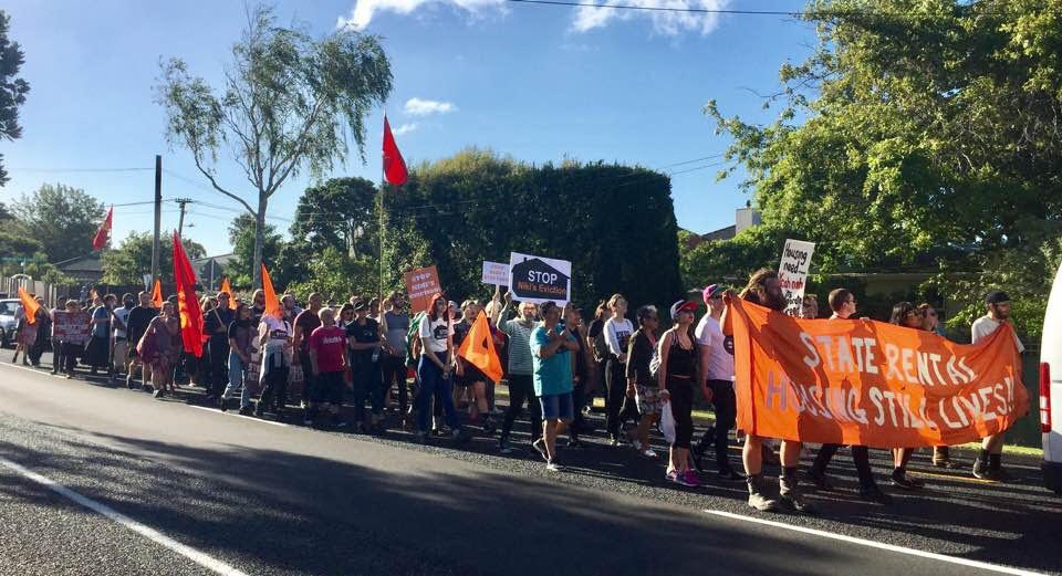 The social movement of 2017 hit the streets of Glen Innes in strength yesterday to defend Ioela Niki Rauti from eviction at the hands of the State. Activists from many campaign groups united pledging material and physical solidarity to stop the ethnic and social cleansing of working class Glen Innes, built on Maori land to provide "homes for heroes" after the suffering of two world wars and the Depression.
