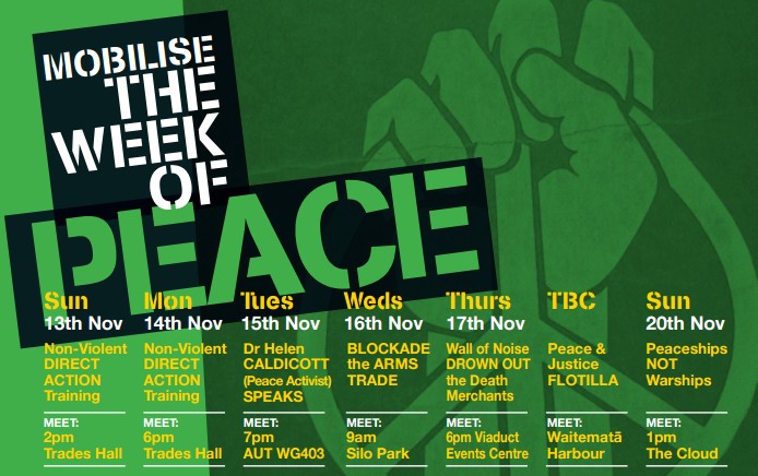 In response to the Government’s Week of War, peace action groups are coordinating a Week of Peace in Auckland.