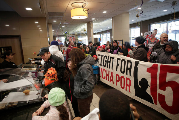 The protest is timed to the fourth anniversary of the first major Fight for 15 action, when fast-food workers walked off the job in 2012.