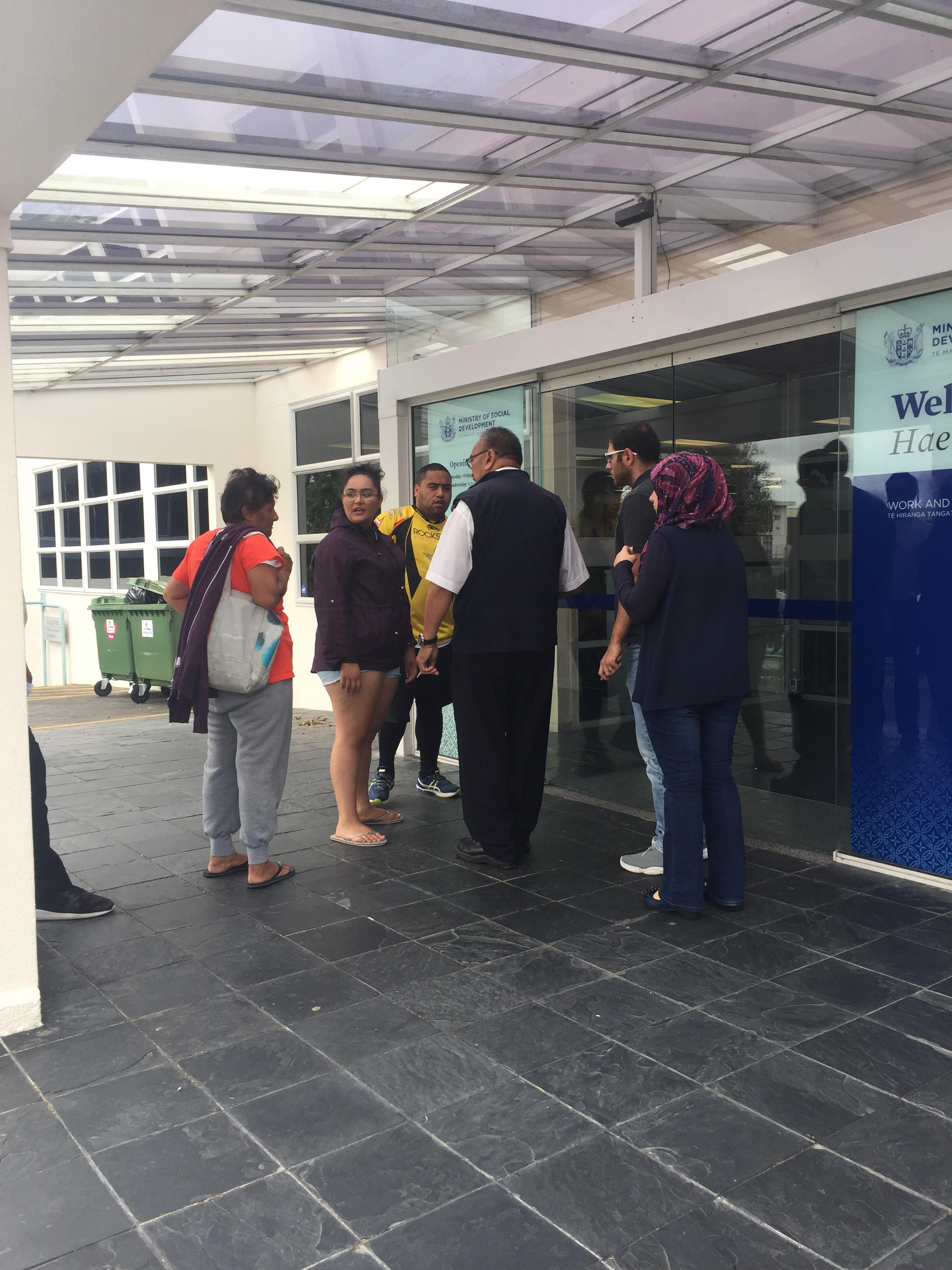 Unite union delegate Dave Toopis checking IDs at Otara Work and Income.